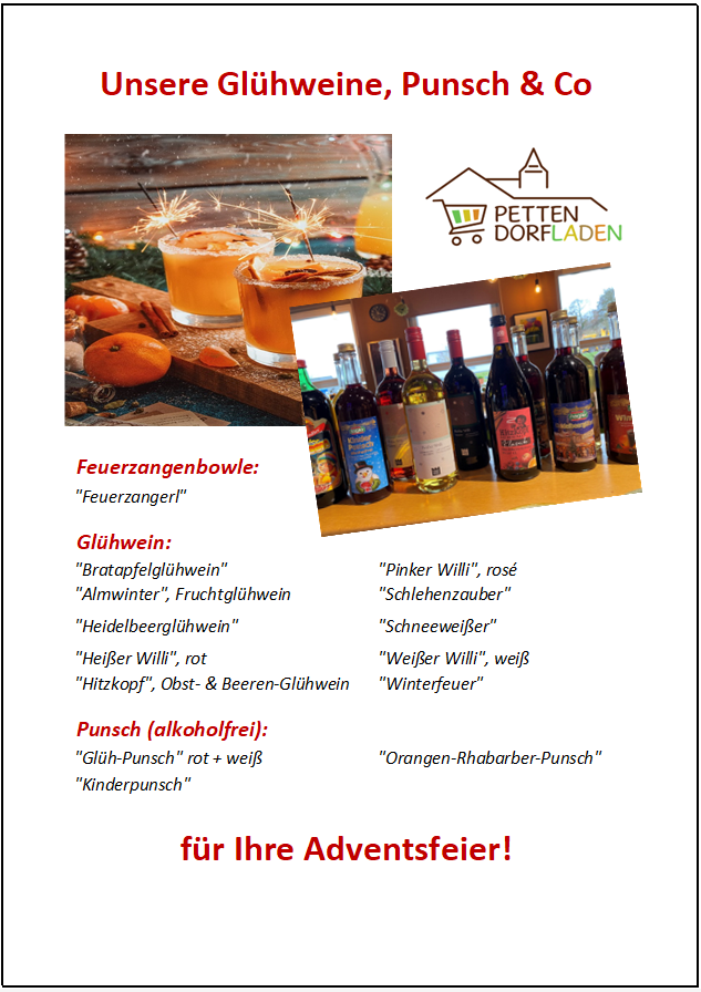 unsere Glühweine, Punsche & Co für Ihre Adventsfeier!