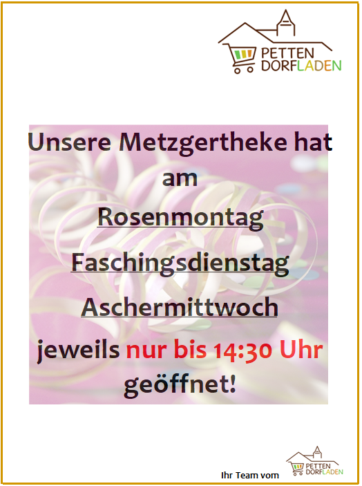 HELAU!! Faschings-Öffnungszeiten Metzgerei